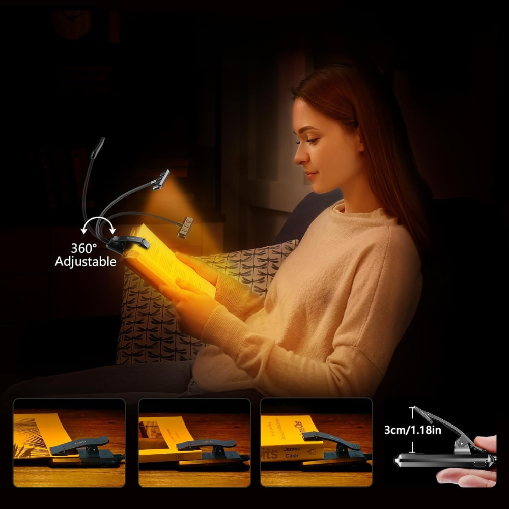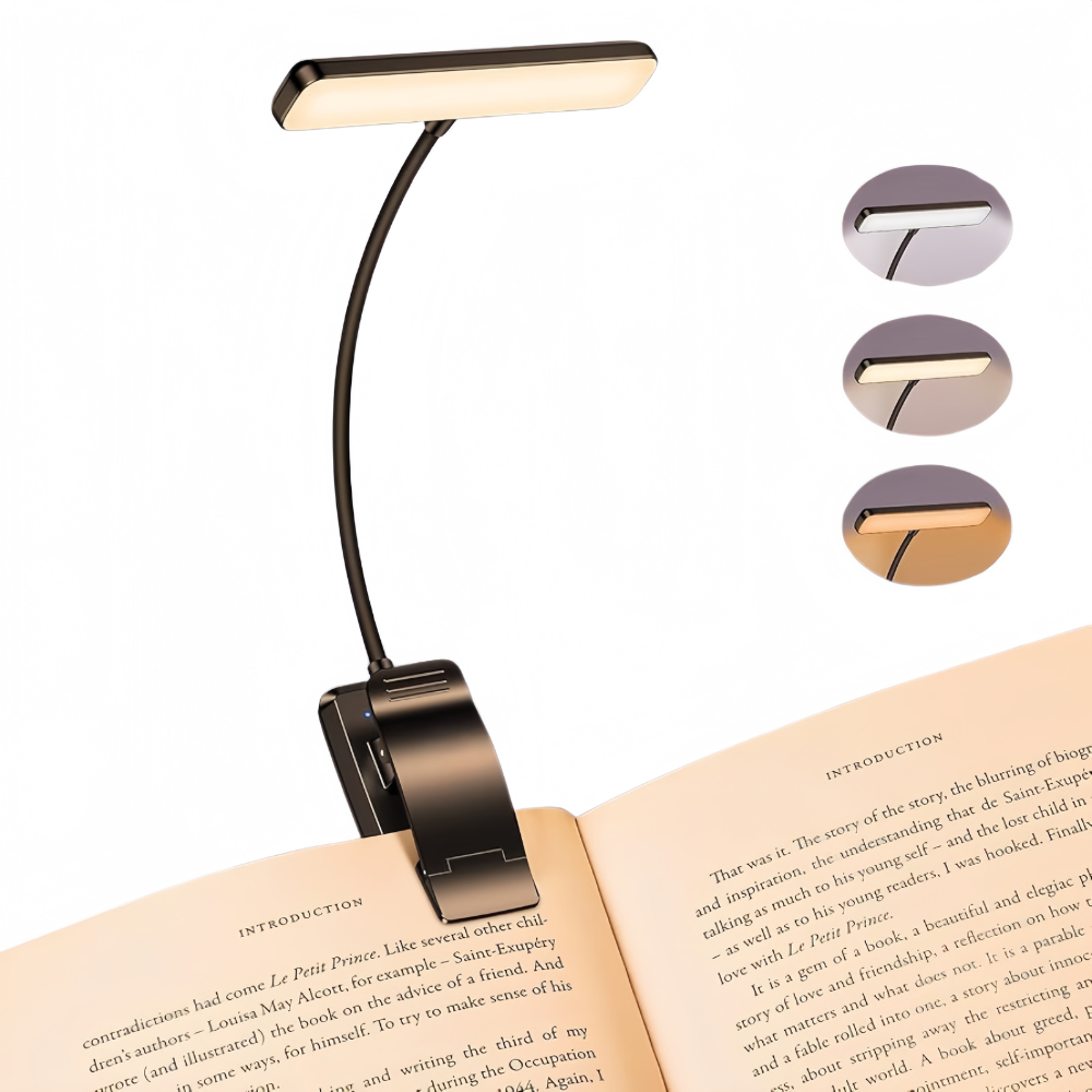 Diseñada para ofrecer una iluminación uniforme y regulable, esta luz de lectura se adapta a cada momento y ayuda a reducir la fatiga visual, incluso en sesiones largas.